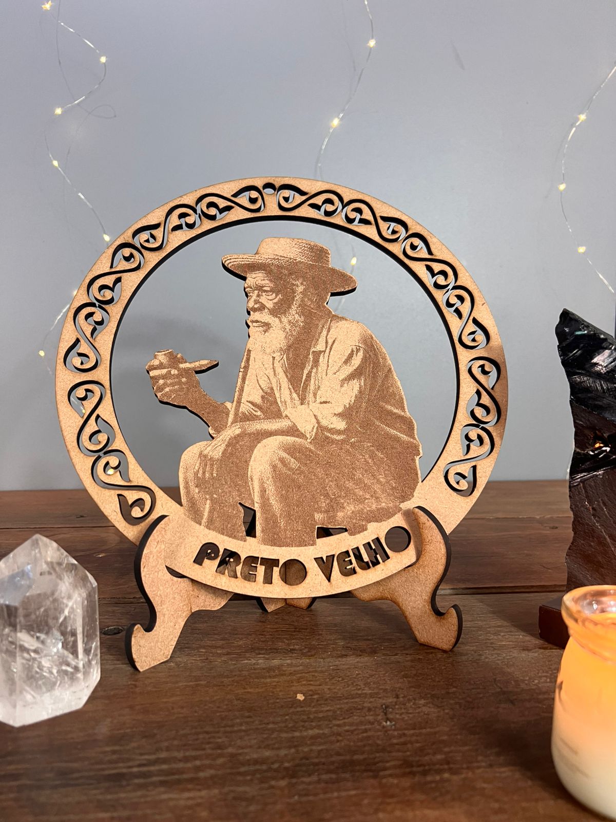 A representação do Preto Velho é um ícone de paciência e proteção. Seja na sala de estar, em um corredor ou no seu espaço de leitura, esta mandala serve como um lembrete diário de que a calma é a melhor resposta para os desafios. É uma peça decorativa que conversa com a alma e traz um “ar de acolhimento” para qualquer cômodo.
